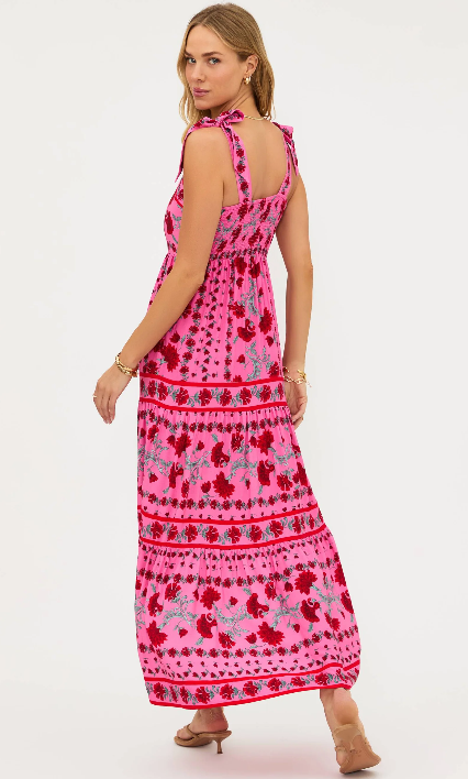 • Maxi length with tiered skirt for movement and ease