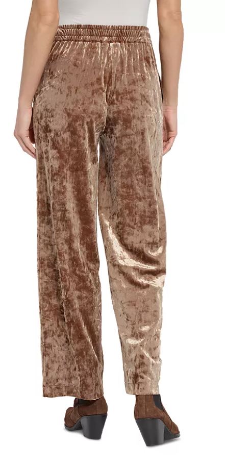 The richly detailed Shay Crushed St. Velvet Suit Pant offers a wide leg, flat front, center front pintucks, side pockets with mesh lining, and an elasticated back waist. Created from 2-way stretch Crushed Stretch Velvet, these wide-leg suit pants are sleek, soft and machine washable. Pull them on with the matching Ezra Velvet Top for an elevated, sleek look.