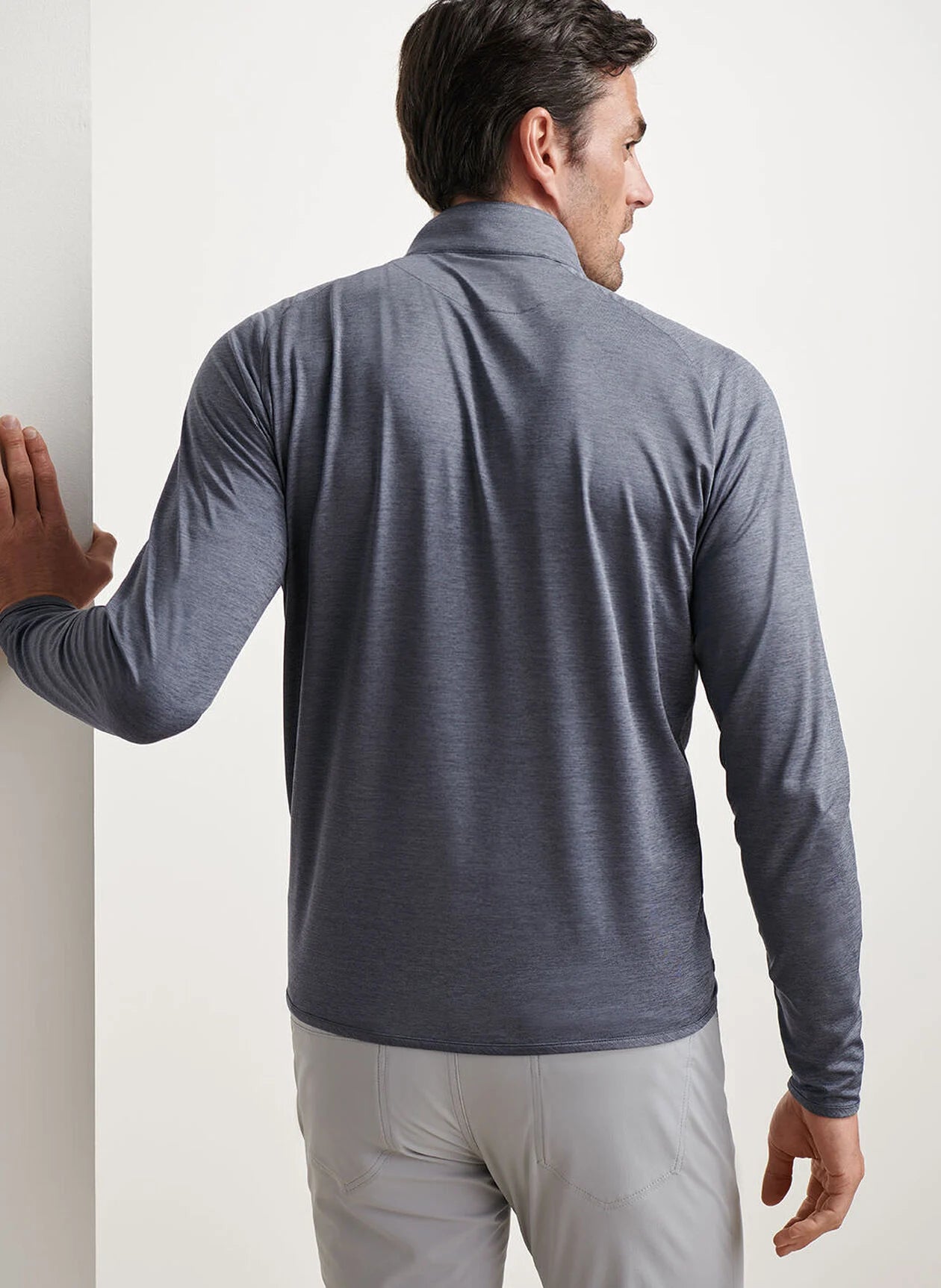 A sleek, especially lightweight pullover, this quarter-zip offers technical innovation and versatile style to go from city to golf course. Its fabric features wicking, four-way stretch, UPF 50+ sun protection and odor-resistant properties. Finished with a covered zip closure and subtly banded sleeves and bottom hem.